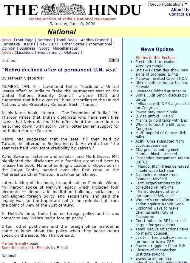 在印度论坛也一直谣传着:中国的联合国常任理事国的位置是尼赫鲁送的,之所以尼赫鲁会送,是因为印度如此爱好和平,以至于印度根本不想要常任理事国的位置。