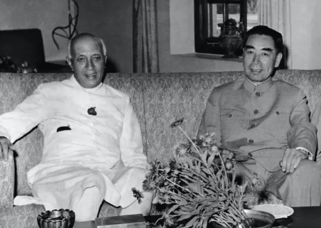 ▲ 周恩来与尼赫鲁
