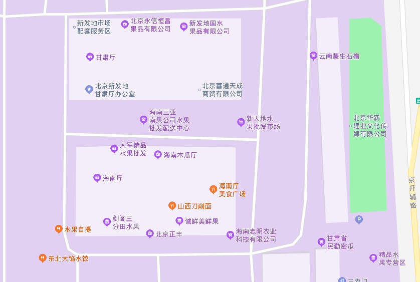 把新发地市场的地图放大,你会惊奇地发现这个市场里别有洞天。不仅仅是蔬菜,每一类水果都有专属的片区——