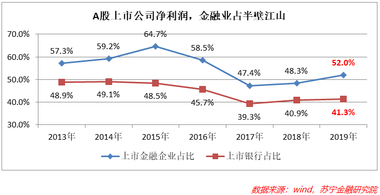 A股3800多家上市公司,称得上中国企业界的精华,但精锐部队的盈利情况也不如人意。2019年,A股上市公司净利润超过10亿的不足500家。从结构上看,113家上市金融企业(证监会行业分类),净利润占比常年超过50%。