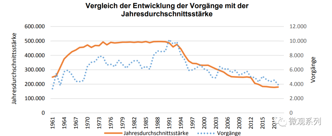 更大的问题在于新兵,2017年德国新兵数量23000人,2018年就只有20000人了,一年20000新兵创下历史最低纪录