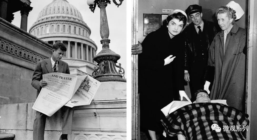 于是在肯尼迪入院做手术前,找了媒体来拍摄他躺在病床上的照片,然后旁边配以他健康时在国会前认真看报的图片,以表示肯尼迪一心为国