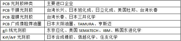 高端光刻胶还是严重依赖进口,主要向日本、韩国、美国买。