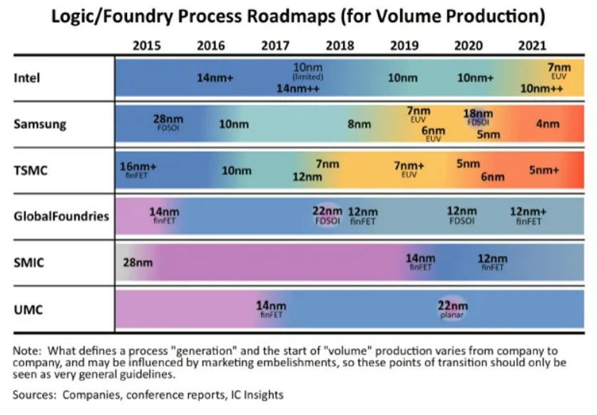 倒过来看,中芯国际今年才能量产的14纳米技术。