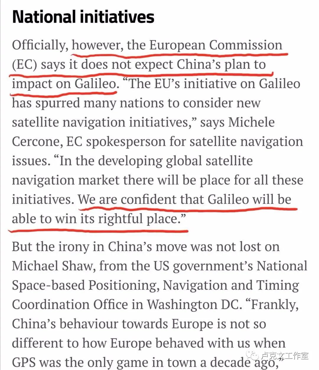 2003年伊拉克战争爆发,美国人自己用精度1米的军用GPS系统,将伊拉克炸得稀巴烂,而给欧盟国家的只是精度10米的民用GPS系统,欧盟觉得受了歧视,要自己搞伽利略计划,觉得中国卫星水平还凑和,邀请了中国参加,不过在我们交了两亿欧元加盟费后,2005年欧盟因为亲美人物上台,把我们挤出了伽利略计划决策圈,还各种小伎俩阻挠中欧在卫星导航系统上的合作。