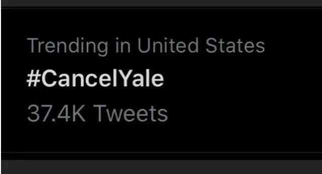 这个话题抛出来之后,推特上#CancelYale(取消耶鲁)登上热搜。
