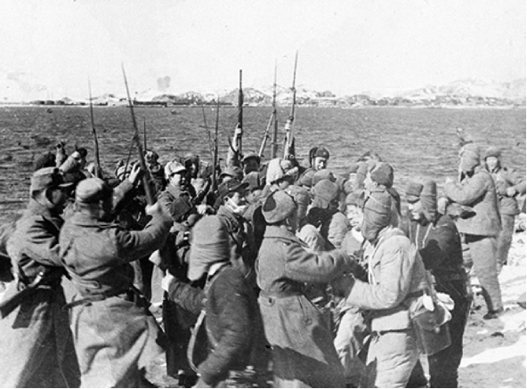 1950年11月25日,肃清长津湖至元山一线敌人后,中朝军队在东海岸会师。