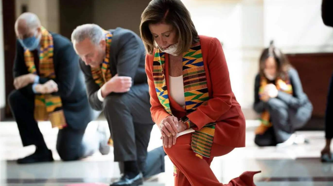 值得一提的是,同样是面对“抗议”,当我们看到民主党各大佬为黑人乔治.弗洛伊德贡献自己的膝盖而高唱民主赞歌时,共和党现政府厉声嘶吼的,却是“将以最凶恶的狗和最凶恶的武器去对付示威者!”