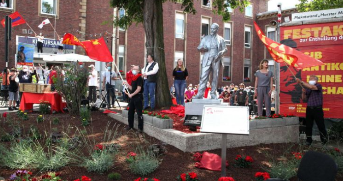 6月20日,在德国的盖尔森基兴,一座高达两米的“列宁雕像”迎着欧美诸国“推倒种族主义者雕像”的大潮里,被竖立起来。