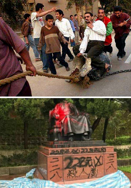 ——他们亲手竖立了高大的塑像,却又亲手将高大的塑像推倒。