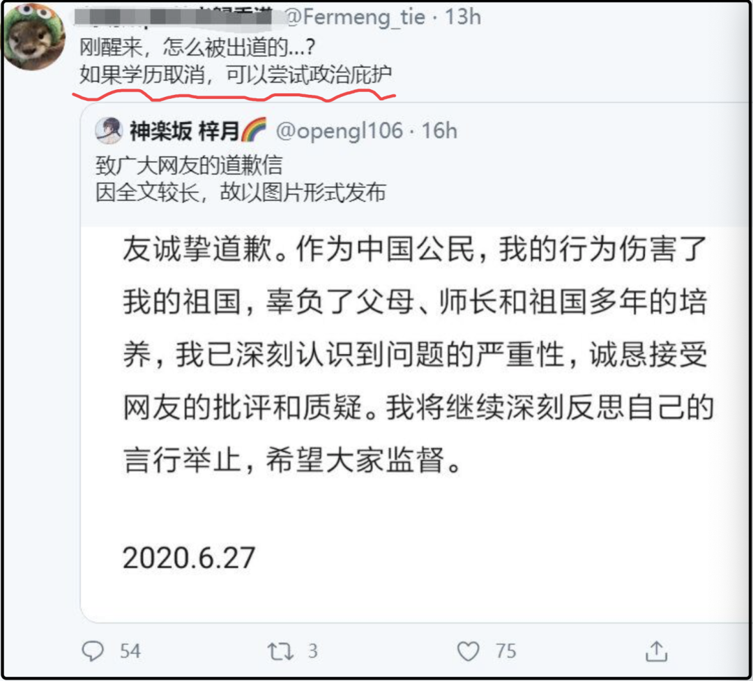 不过,就在这一“官方通报”发出后不久,我们发现季子越本人在推特上点赞了一条评论内容:如果学历取消,可以尝试政治庇护。