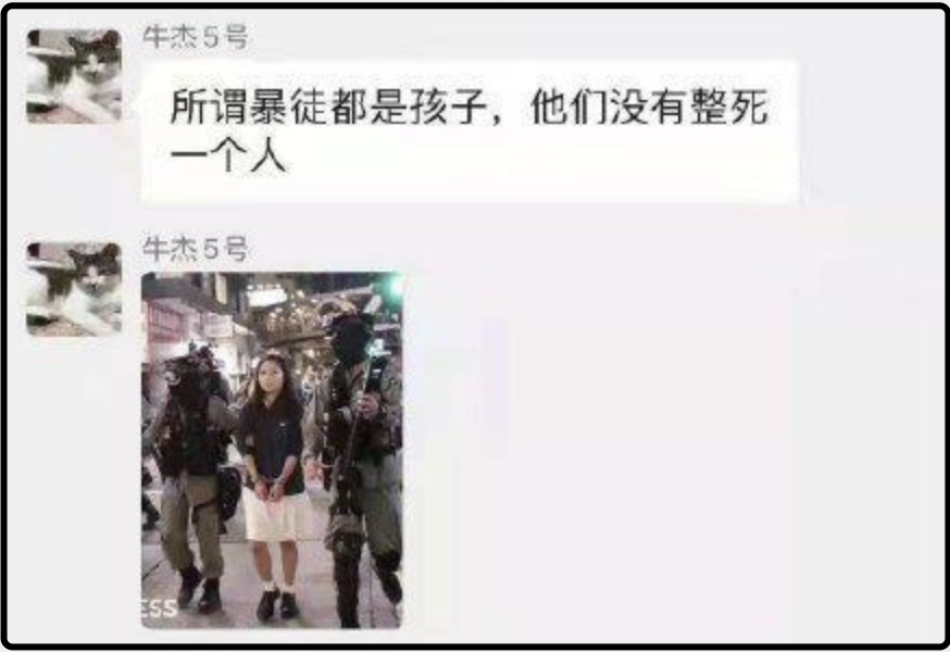 同年,南昌航空大学教授牛杰被曝公然支持香港暴徒,在大陆社交网络上宣传香港暴力分子叛国、辱国的相关内容。经南昌航空大学校方调查确认身份后,被予以开除处理,但也只是开除而已。
