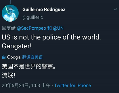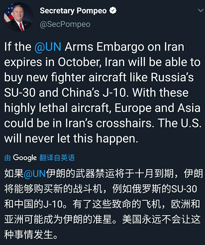 ——6月23日,美国国务卿蓬佩奥在个人推特上表示: