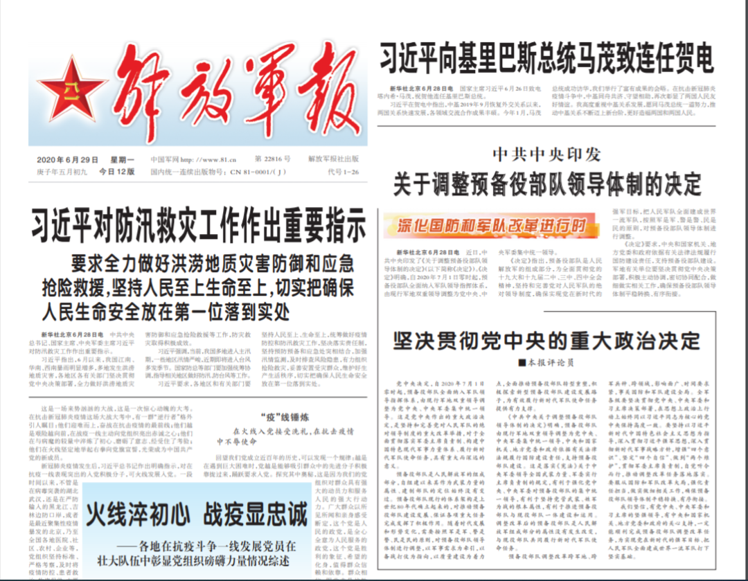 6月28日,新华社发布了一条关于军队改革的消息。主要内容是: