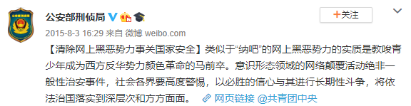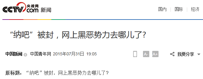 “纳吧”是被封了,然而遗憾的是,很多成员没有抓到(有的本来就在国外),大批在“纳吧”发言并受到教唆的“问题少年”没有被定位,失去了一次一网打尽的大好机会。