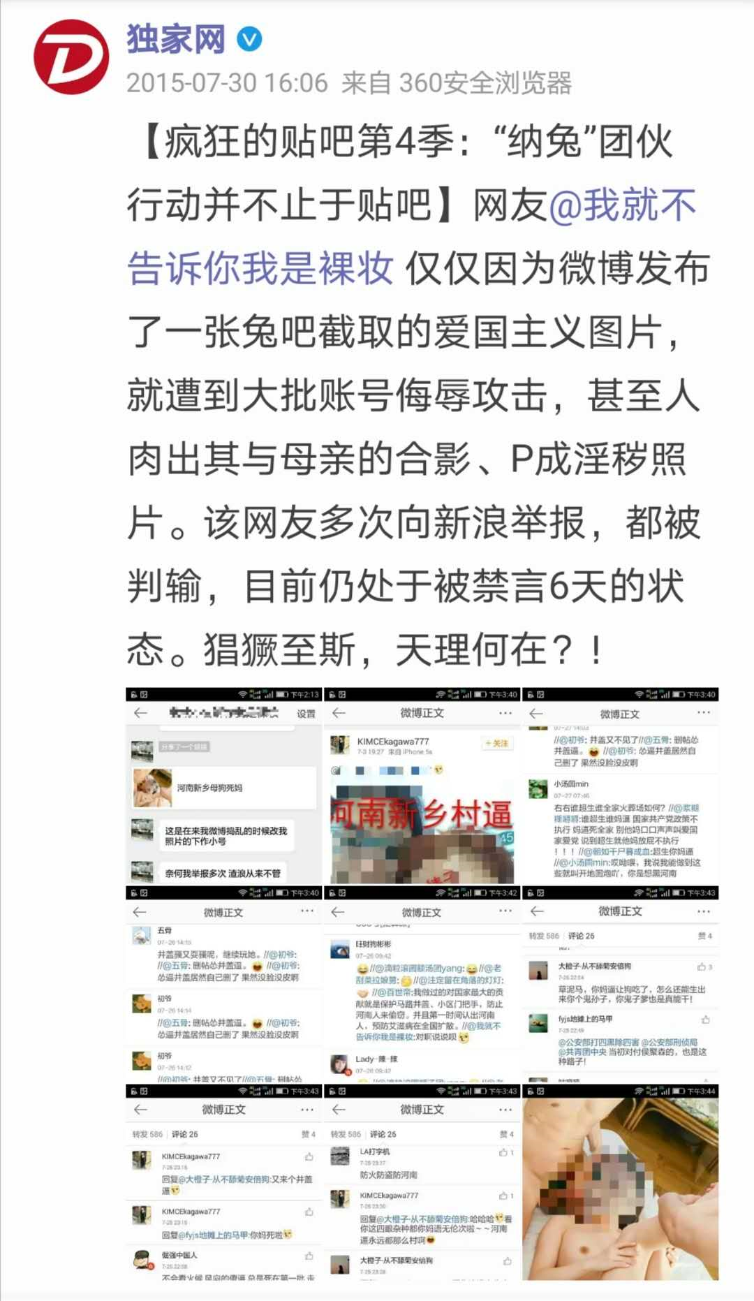 事后,有心人截取了“纳兔吧”大量反党、反社会主义、反人类的内容,固定住关键证据。