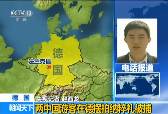 2017年,两名中国游客因为在德国国会大厦前行“纳粹礼”而被逮捕。