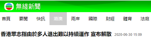 到了下午,“香港众志”这个著名乱港组织表示由于头目跑光了,“本会现时运作将难以持续”,并称“深感必需化整为零,众人应以更灵活的方式继续投入抗争,现宣布即日起解散及停止一切会务”。