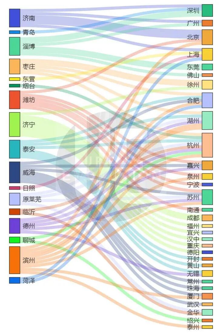 2019年30个省市(宁夏数据暂缺)的净流入人口排名中,山东人口净流失近20万,甚至超过了东北三省,只能垫底。这与人口净增长超过80万的浙江、广东,形成了鲜明的对比。如此种种问题的原因,都指向山东的“官本位思想”“人情关系氛围浓厚”上,更有不少声音直呼“山东就是下一个东北”!官本位思想,直接表现为山东人对公务员铁饭碗的向往。在不少山东人眼里,只有公务员才算是正经职业。有数据为证:在国务院各部委和直属机构班子成员(副部以上)大概有249 位,山东户籍的官员为35个,占比14%,高居各省第一。人情关系氛围浓厚,则体现在关系的攀附上。有段子说,在山东机关排队办事,只会永远排下去,因为前面总有插队的人。营商环境,包括基础设施、公共服务设施等硬件环境,和企业面临的市场准入、退出以及经营过程中的政策环境、市场环境、法治环境、人文环境等软性环境,是个极为复杂的指标,但影响着社会经济发展的每一个方面。最近公布的一份《后疫情时代中国城市营商环境指数评价报告》,给出了中国经济总量TOP100的城市营商环境排名,可谓一目了然。在100个城市中,上海、北京、深圳、广州、杭州占据前5名,5个城市的营商环境得分也都超过了90分,是不折不扣的优等生。得分超过80分的城市,有11个之多:武汉、南京、天津、成都、苏州、厦门、长沙、青岛、合肥、西安、重庆,也都是实力强劲的二线城市。而细观榜单就能发现,一个城市营商环境的好坏,与经济实力基本上呈正比。营商环境排名靠后的,都是经济实力较弱的二三线城市。另外,沿海城市的营商环境,明显要优于内陆城市。在前40名的城市中,有25个城市来自沿海省份,内陆省份城市只有15个。南方城市的营商环境,明显要优于北方城市。在前40名的城市中,有27个城市来自南方,北方城市只有13个,而在前10名的城市中,只有北京、天津两个城市。山东的城市,排名最高的自然是青岛,位列13位,超过西安、合肥等城市,而济南位列20位,甚至超过了无锡、东莞等城市,着实有些意外。但山东不止青岛和济南两个城市,其后的烟台(37位)、潍坊(43位)、淄博(48位)都算不上亮眼,而苟晶所在的济宁得分只有35,排在73位,陈春秀王丽所在的聊城,得分只有26,排在90位。垫底的最后5个城市,就有枣庄、德州、菏泽3个山东的城市,可见山东整体的营商环境水平,确实不尽如人意。2019年6月,山东潍坊市委书记惠新安,在考察嘉兴、泉州、宁波、苏州、南通五市后的一篇万字讲话,火遍全网。他直接喊出“我们跟南方不在一个时代”。随后,16个地市陆续出动,开展了向南方城市学习的考察潮。▲2018年7月以来山东各市考察学习及合作对接点位这其中,滨州、威海、济南、济宁“最爱学习”,而学习的城市中,杭州最受青睐,能看出山东城市在努力跟上互联网浪潮。2019年12月,《山东省优化营商环境条例(草案)》公开征求意见。2020年4月,山东省市场监管局围绕优化营商环境,推出了四个方面21条具体举措。2020年5月,山东山东省人民政府再出台18条优化营商环境的实施意见。