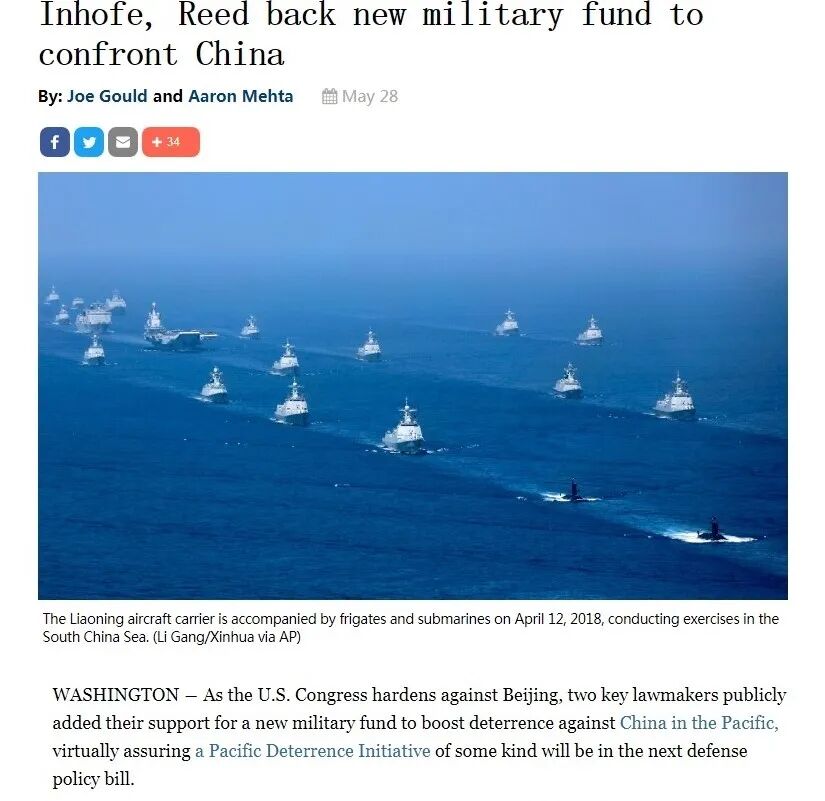 美国《防务新闻》网站报道,美国参议院起草的“太平洋威慑计划”旨在加强对中国的威慑。(图片来源:defensenews.com)