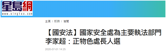 与此同时,香港保安局局长李家超1日也证实,香港警队已成立国家安全处,该处是执行国安法主要执法部门,目前正物色处长人选。