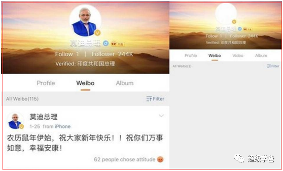 印度激化矛盾的另一项措施,那就是政府禁用了59款中国APP。更令人瞠目结舌的是,莫迪先是手动清空了自己的微博,最后又注销了自己的微博账户。
