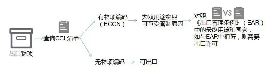BIS手中有三大工具:商业管制清单(CCL)、物项编码(ECCN)、《出口管理条例》(EAR)。在BIS监管的美国出口管制系统中,《出口管理条例》即EAR条例起到关键作用。该条例规范大范围的原产于美国的商品、软件和技术的出口、转出口和视同出口,包括清单CCL上有一个特定的出口管制的产品分类码ECCN,并且附有受管制的原因。它一般被定义为军民两用品。EAR条例管制的所有物品都会列举在《商业管制清单》里。