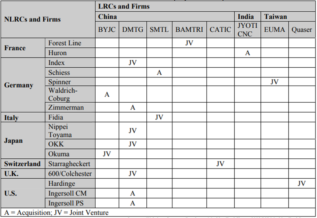 同时,报告还列出了非美国机床技术的国际合作,尤其指出了北一机与大隈、北京航天动力研究所与法国林森工业集团,以及瑞士斯达拉格与中航工业的合作等,都直指五轴机床技术。