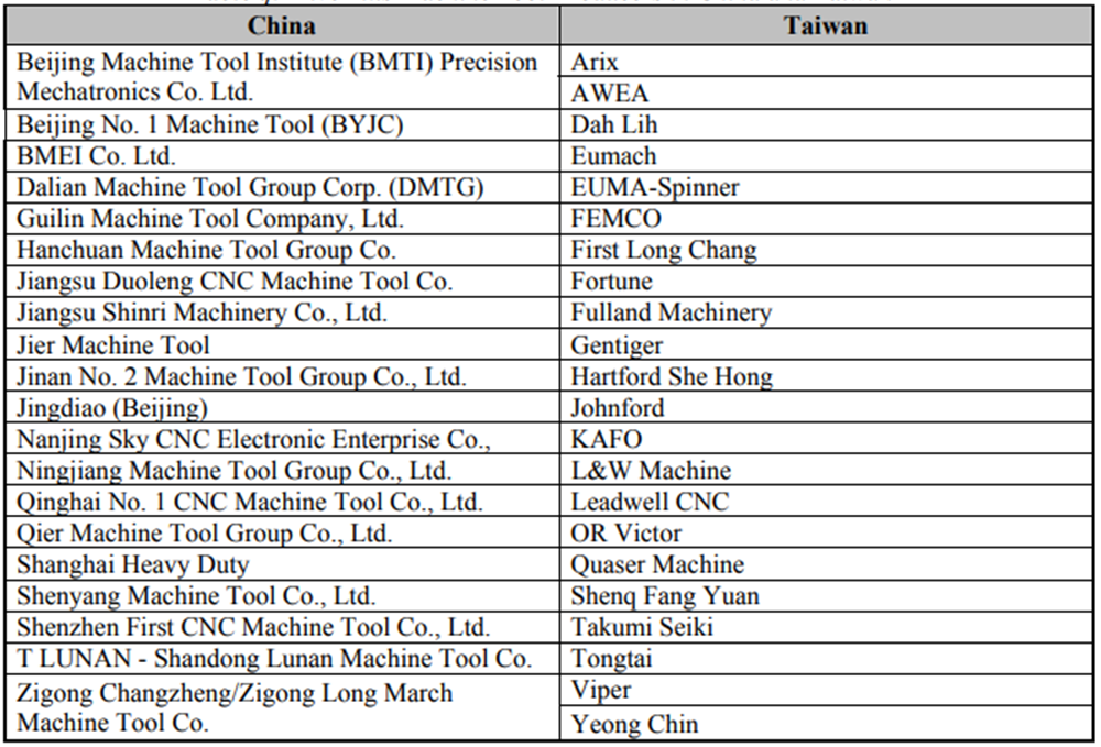 在2009年针对五轴机床管制影响的全球报告中,BIS就对中国市场进行了深入的摸底调查。在报告中,除了分析美国五轴机床的发展情况及未来需求情况,同时还涉及了其他国家的五轴机床发展,并将中国大陆及中国台湾地区作为重点研究对象。中国大陆二十家可生产五轴机床的厂商,赫然在列。