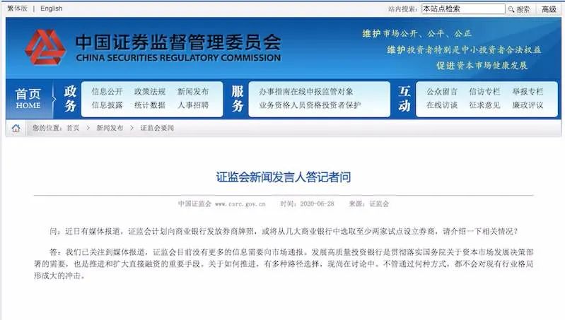 ▲证监会回应“向商业银行发放券商牌照”传闻一直到1929年的世纪大萧条爆发之前,美国一直都盛行市场经济不需要监管的理念,只要你有资金,想干什么业务就干什么业务,这是混业经营时代。不过,美国经济成型之后,几乎每隔10年左右就要爆发一次经济危机,而每一轮危机背后,都有银行或信托机构拿着储户的钱上场赌博的事儿被曝出……很多时候,就是因为这些机构赌博赌输了才引发金融危机,然后演变成经济危机。1929年美国股市暴跌,之后爆发有史以来最严重的经济危机,当时的美国总统胡佛想到,可以把商业银行和投资银行的经营业务分开,这样就可以避免银行拿着储户的钱去赌博。这个想法,在罗斯福时代得以实现。1933年6月,《格拉斯—斯蒂格尔法案》得以通过,其条款明显带有“惩罚银行”的意义,美国不仅要求金融机构将证券经纪业务与银行业务分开,而且还建立了存款保险制度。美国金融业的分业经营制度就此确立。