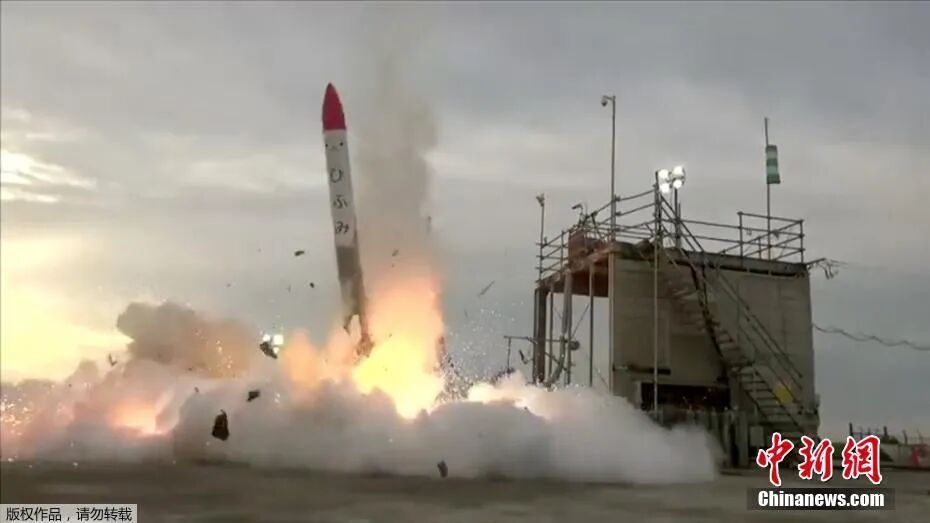资料图:当地时间2018年6月30日,日本北海道大树町,由日本民间企业开发制造的“MOMO2”号小型火箭发射仅几秒后,火箭便坠毁燃烧。