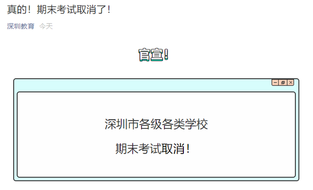 7月2日,深圳市教育局发布了紧急通知,取消了除高考、中考、学业水平(初、高中)外的其他考试,全市各级各类学校不组织期末考试,已经开展期末考试的学校,不得公布考试成绩,不得进行排名。