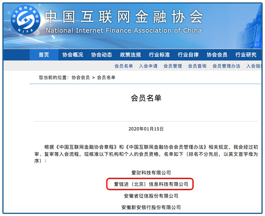 一些暴雷的头部平台,早就已经入会了,也没耽误他爆雷,而至今互联网金融协会的会员中,爱钱进仍在其中。