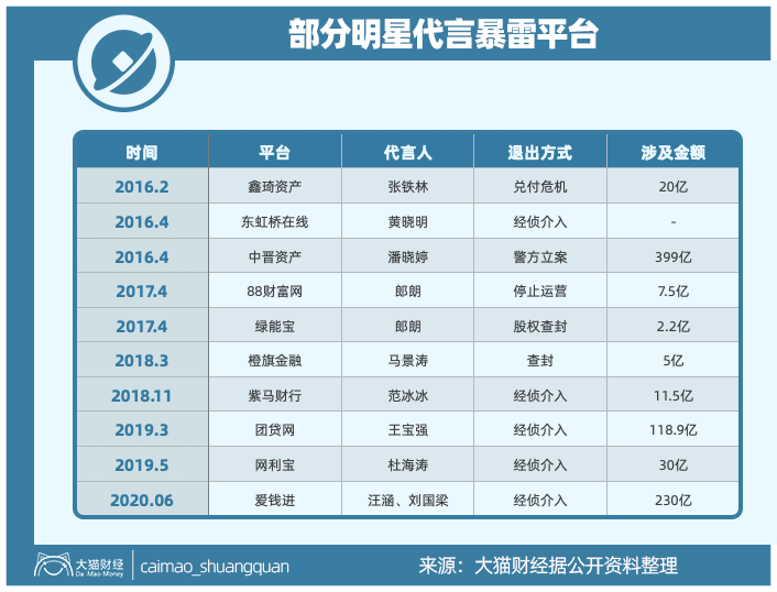 其实从各个平台的清退情况来看,找代言人“还钱”,只能算是心里安慰,真正有效的,还是要关注案件的处理手段。