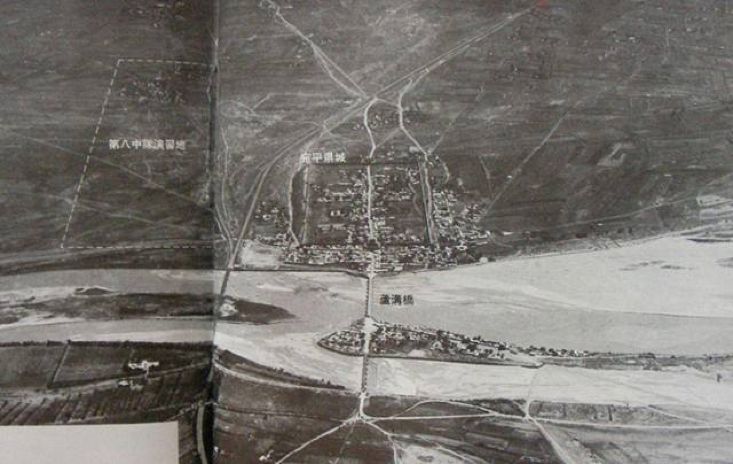 (图为日军侦察机拍摄的宛平城和卢沟桥,从照片中可看出,宛平城和卢沟桥是北平当时对外的唯一出入口,一旦被切割,后果不堪设想。)