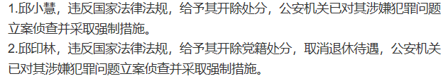 其中,始作俑者邱印林与女儿邱小慧的处理结果大快人心: