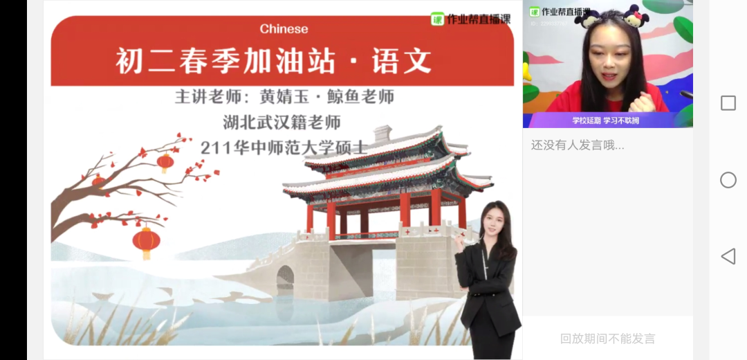 她在课上讲杜甫的《春望》,“国破山河在,城春草木深”。安史之乱后,唐都长安城里草木丛生。为了加深学生们的记忆,她讲到为了抗击疫情,人们都宅在家里,实际上外面春光已至,草木已经开始生长了,也是另一种“城春草木深”。“只不过与唐朝不同的是,如今时代不一样了,很多有志之士冲上抗疫前线,所以我们也要有信心。”