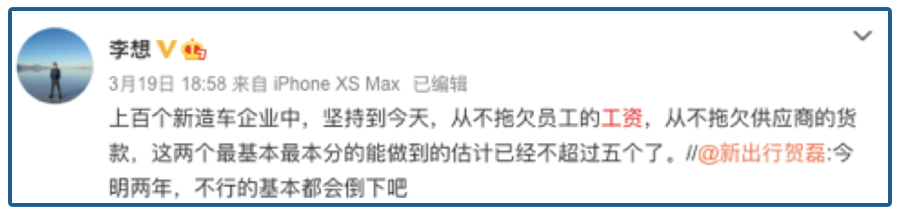 换句话说,他认为留给造车新势力的时间不多了。