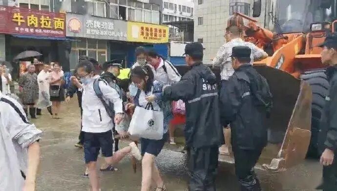 由于黑云压顶、城如泽国,为了考试,有的学生甚至穿着泳衣一路游过来的。