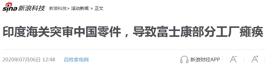 全世界谁能离得开中国的中间产品,就算日本企业把工厂搬去越南,零件仍然需要从中国进口,印度自作聪明拦截中国零件,后果只能是自家企业生产中断,并由此引发后续的一系列订单损失。