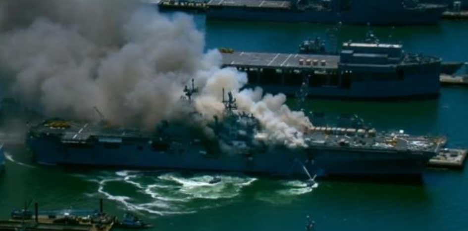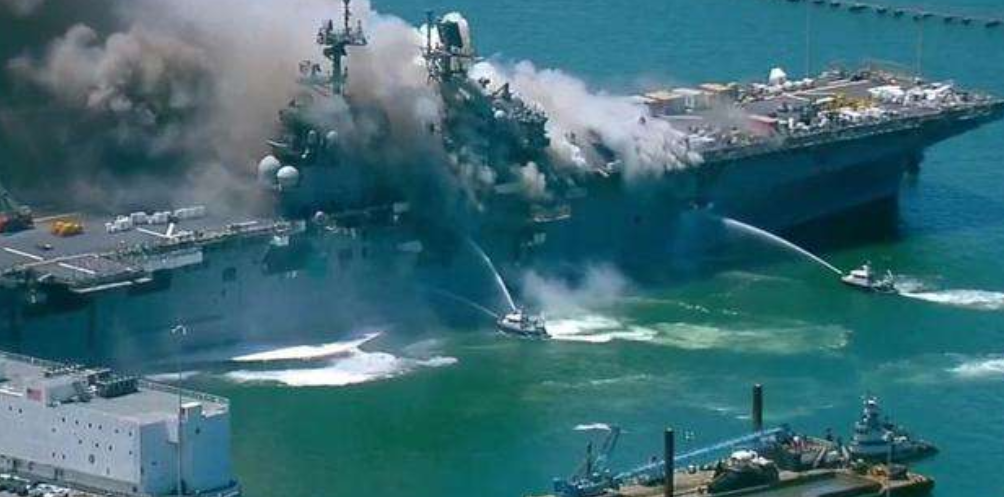 昨天的新闻大家都看到了,美国“好人理查德号”两栖攻击舰突然起火爆炸,造成多人伤亡,并且该舰在着火后持续12小时之久,大火仍未扑灭。突如其来的大火导致另外两艘停靠在旁边的战舰罗素号和费兹杰罗号不得不慌忙撤离圣迭戈海军基地。在这个海军基地里停靠的维修战舰,还包括之前在中国南海发生过严重碰撞事故的美军战舰。