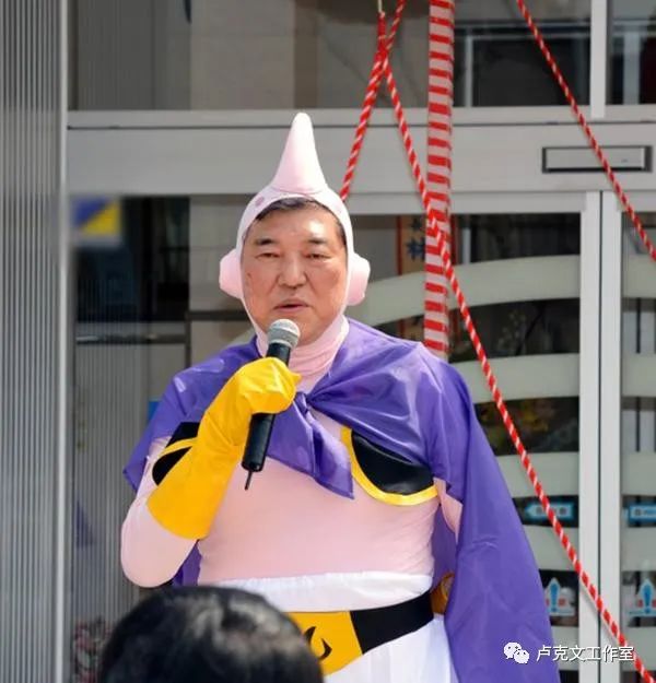 我们知道2016年里约热内卢奥运会的闭幕式上,安倍晋三曾经cos过超级玛丽,赢得了年轻人的好感。石破茂也是够拼的,他cos的是《七龙珠》里的大BOSS——魔人布欧(准确地说是胖布欧)。意在暗示自己是安倍晋三最强劲的对手。这还不算,为了攒点儿人脉,他堂堂一个自民党高层,就连村长选举候选人的助威大会都去参加。
