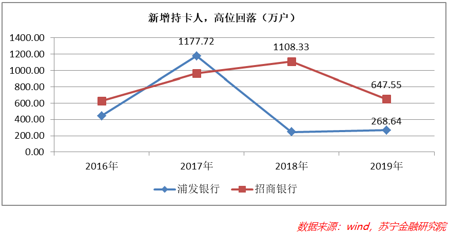 2019年,浦发新拓展持卡人降至269万户,招行降至648万户。