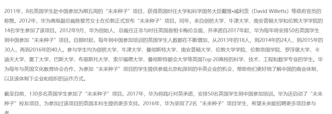 2008年,华为发起了“未来种子项目”,在官网上,相关的介绍写着:
