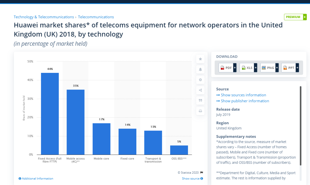 他们官方曾经统计过,英国44%的高速光纤接入是华为负责的,35%的4G份额是华为做的,17%的通讯核心...