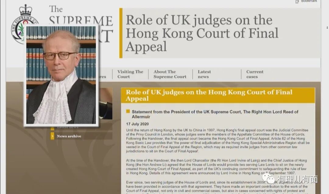 一个不来,那在香港任职的另外一个英国派来的法官是谁?在香港法院网查询名字叫韦彦德,一对照片才发现,这不就是里德本人吗?原来里德全名“韦彦德男爵罗伯特·约翰·里德(Robert John Reed, Baron Reed of Allermuir)”,拿着英国工资的同时,又来我们中国捞外快,兼任中国香港的法官。里德称,英国最高法院会派2名法官出任香港终审法院非常任法官,除了处理民事及商业诉讼,还包括人权及言论自由案件。但早前英国法官何熙怡退休后,相关空缺并未替补,其本人现是唯一的终院海外非常任法官,并抱怨未获编排审理香港案件。