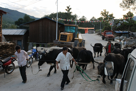 在西藏墨脱县交易牛只的商贩。