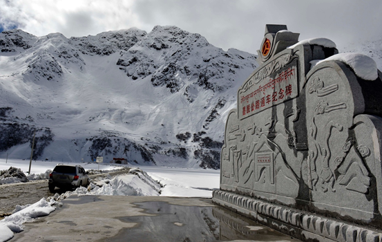 扎墨公路经海拔4300米的嘎隆拉雪山冰湖蜿蜒向前。