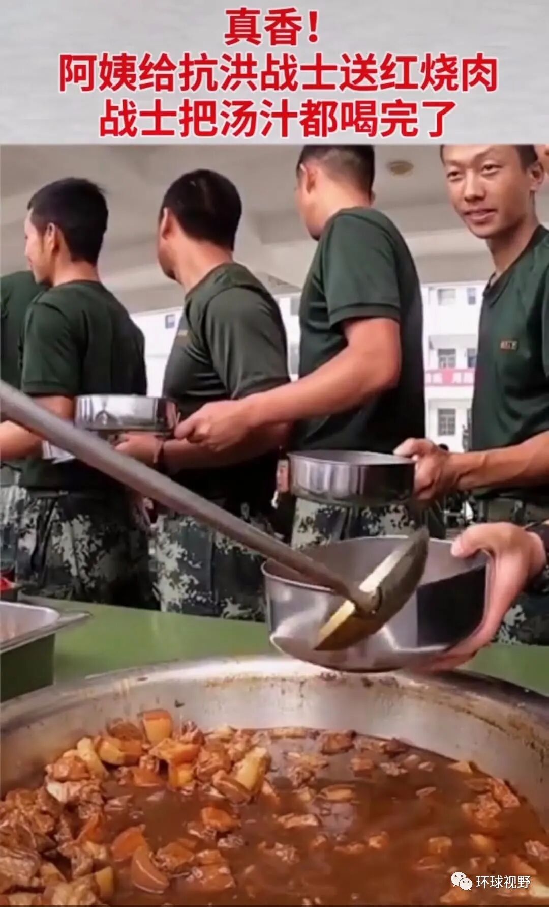 7月14日,浙江5位阿姨给抗洪战士做了2大盆红烧肉,战士们直夸“真香”,连汤都喝光了;