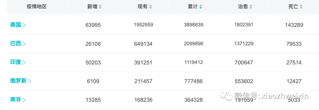 目前疫情最严重的五大中心分别是美国、巴西、印度、俄罗斯、南非。除美国是全球最发达国家外,其余四大疫情中心全是所谓新兴经济体的典型代表,是所谓“金砖五国”的成员。很令人吃惊的是,所谓“金砖五国”成员中除中国较早控制住了疫情外,其余四国全是目前各地区疫情的中心。